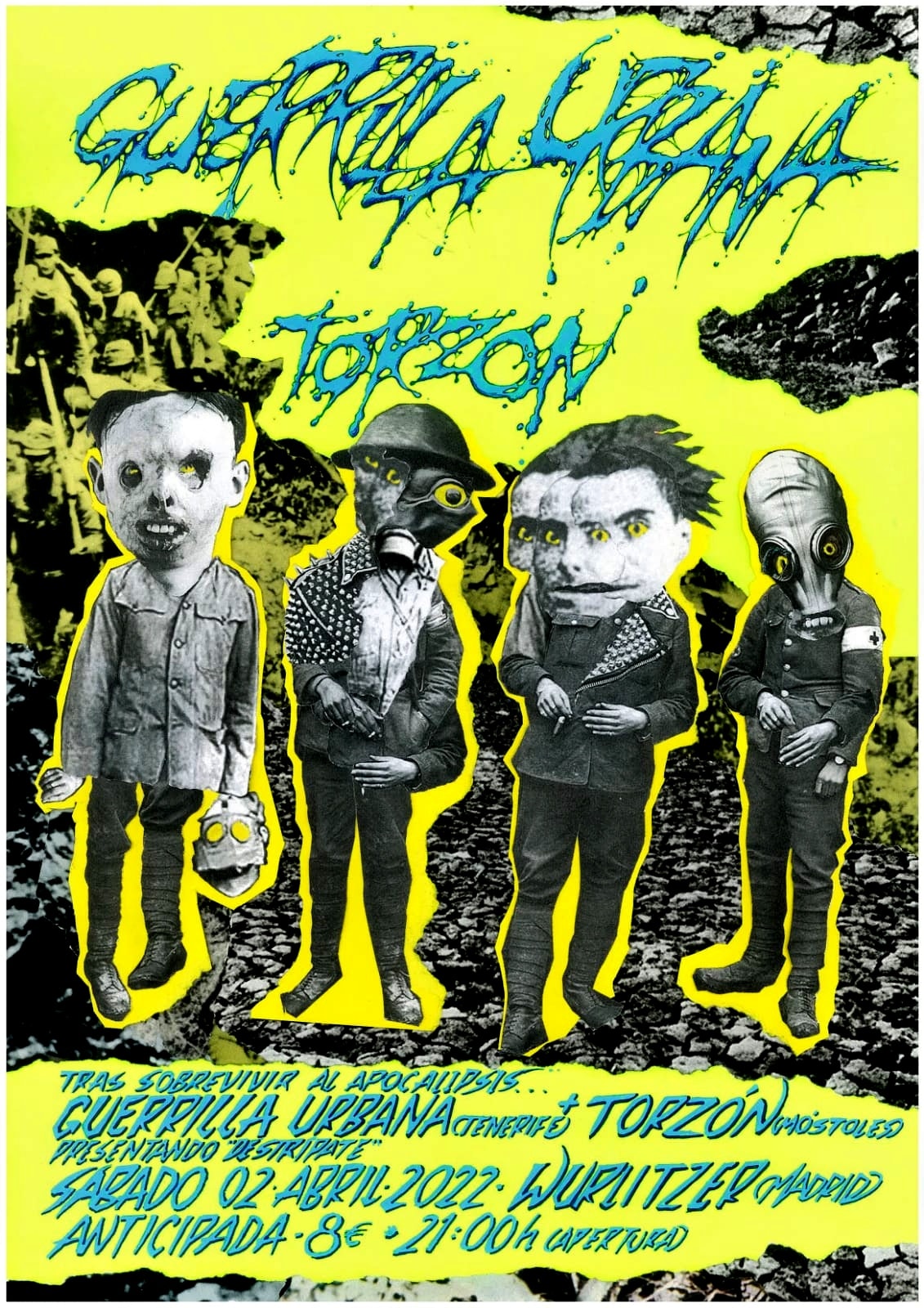 Tras la suspensión del que iba a ser la presentación del disco «Apátridas» Guerrilla Urbana aprovechamos la pandemia para componer y sacar otra criatura que parimos en diciembre de 2021 : «DESTRÍPATE». Nuevamente contamos con los locales TORZÓN y con la sala Wurlitzer Ballroom para el desparrame!!! desentumece tus rodillas y neuronas.