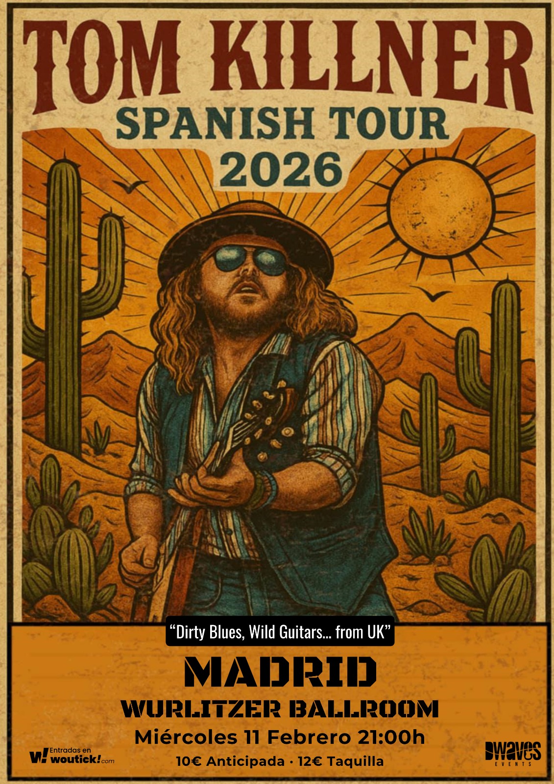 Tom Killner vuelve a España en febrero de 2026 para su segunda visita, tras una primera gira que sorprendió por la fuerza de su directo y su conexión con el público. Este año regresa con un show aún más grande, más afilado y con esa mezcla explosiva de blues, rock y alma británica que lo hace único.